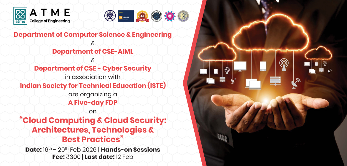 We cordially invite faculty members from AICTE approved institutions and universities, research scholars, PG students, industry professionals, and faculty & staff of the host institution to participate and benefit from the insightful technical sessions.