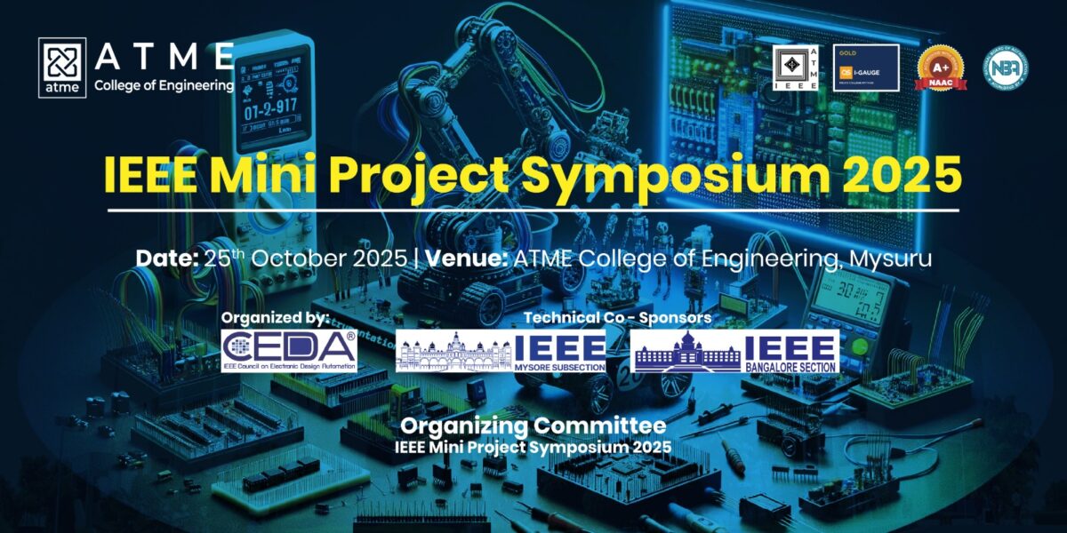 The IEEE Mini Project Symposium 2025 was successfully organized on 25th October 2025 at ATME College of Engineering, Mysuru, organized by IEEE CEDA Bangalore Chapter in association with IEEE Bangalore Chapter, and IEEE Mysore Subsection.