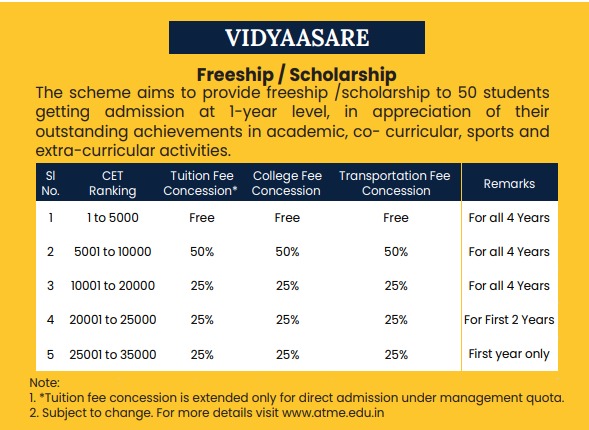 To Avail Merit based Scholarship under ATME Vidyaasare Scheme